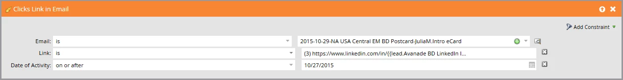 When setting up our smart campaigns to track email clicks, will this be tracked properly when entering this value in the Clicks Link in Email trigger?: