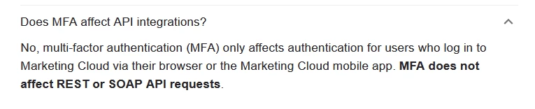 SFDC is going to require Multifactor Authentication starting in Feb 2022. Will this have any effect on the Marketo sync user's ability to login to SFDC? I found this comment when Googling but I'm not sure if Marketo uses the REST or SOAP API to integrate with SFDC.