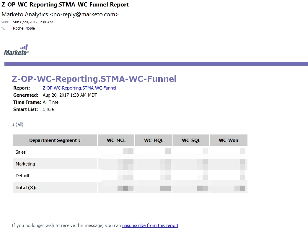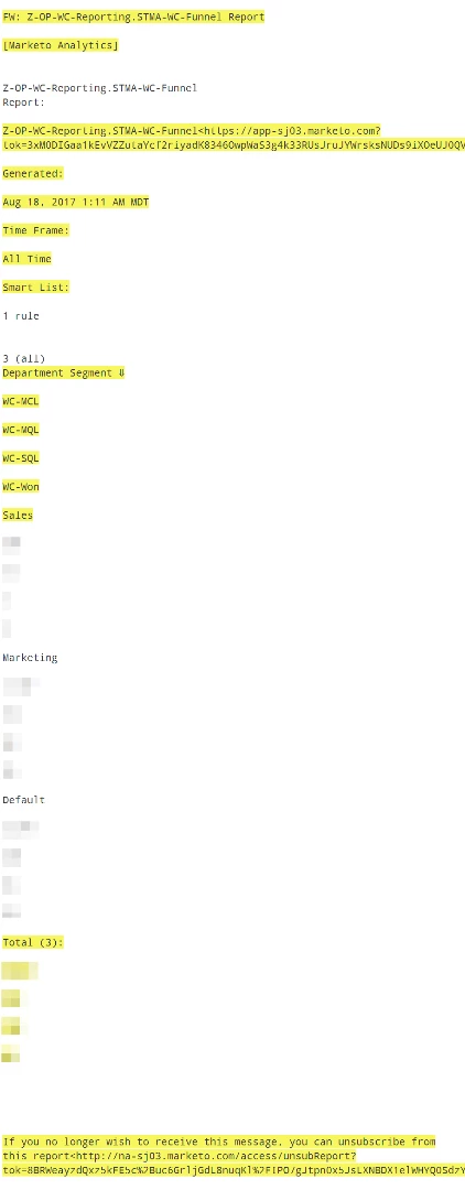 I have a few reports I'm trying to automate. All the data is built through Marketo reports, but I need to manipulate it after the report is pulled and I'd like to do it in an automated fashion (the whole reason I'm in Marketing Automation am I right?). Anyway, I set up a few email parser inboxes with Zapier and subscribed my various Marketo reports to unique parser email addresses. I apologize in advance for all the screenshots!