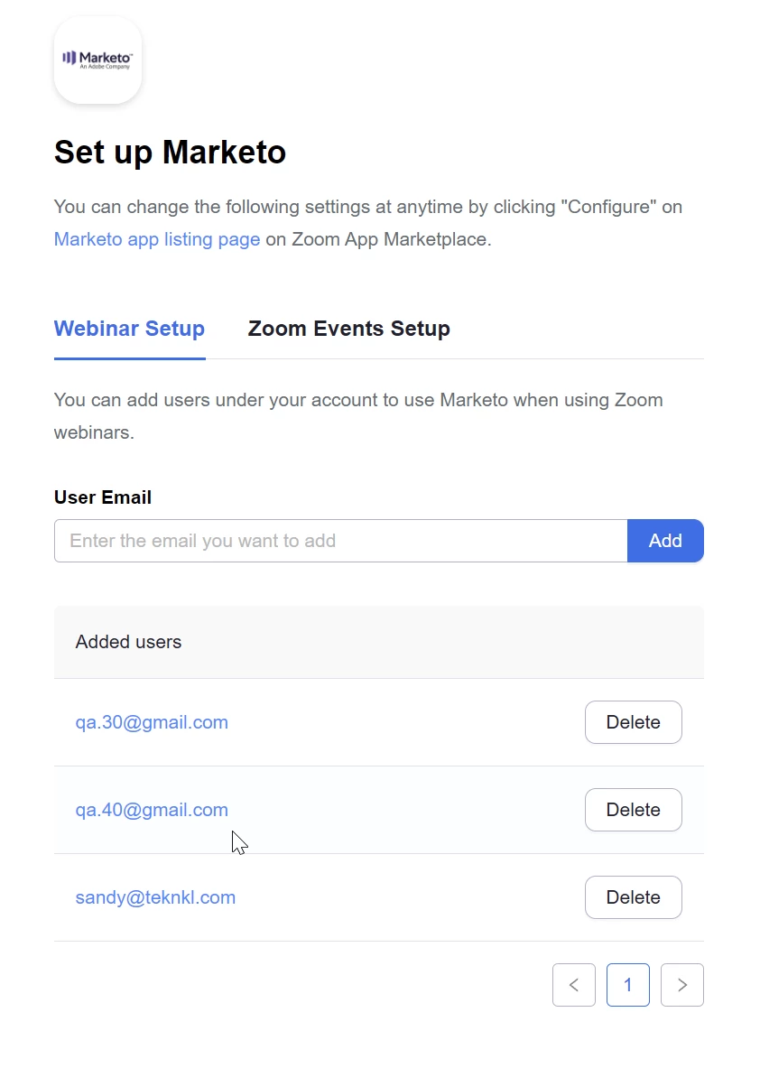 We have a new user who we've granted identical permissions in both Zoom (including the Marketo app config) and Marketo, but none of her webinars show as available to sync to programs. We have tried the same with another user to no avail.