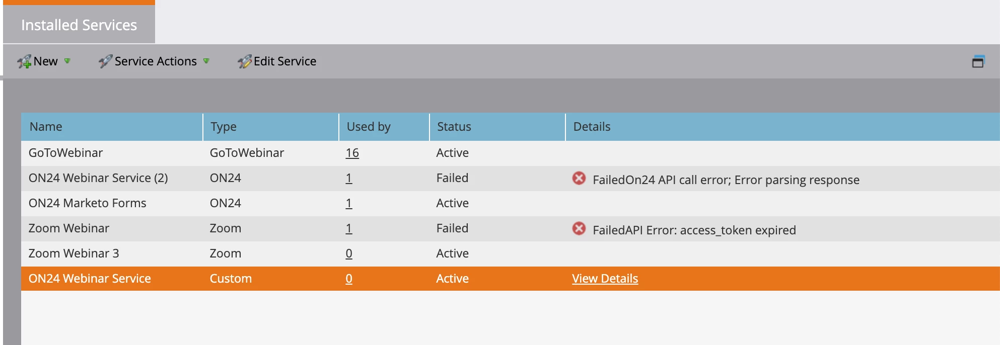 I've been able to do everything else in the instructions, but when I create a Launchpoint Service for Zoom, I don't have the option to 'View Details' and access the 'Client ID' and 'Client Secret'. See row 'Zoom Webinar 3' ...no option to 'View Details'. Any insight on the issue here?