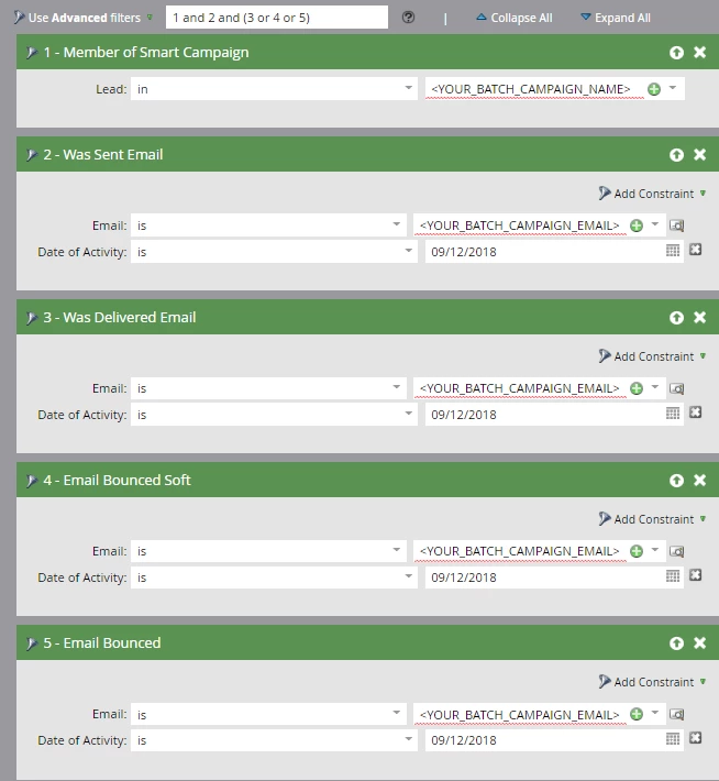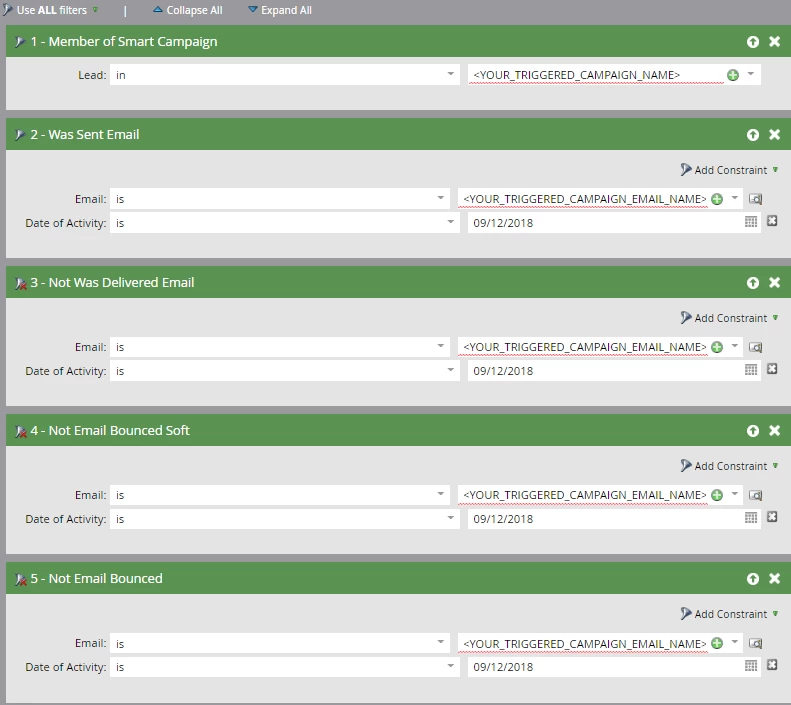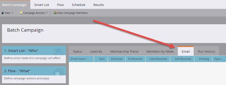 スマートリストを使用して、メールが消失したかどうかを確認する方法が2種類あります。一つはトリガーキャンペーンを、もう一つはバッチキャンペーンを特定します。