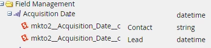 12. Perform steps 3 through 10 for the Lead Score, Acquisition Date, and Acquisition Program fields on the contact object, just as you did for the lead object.