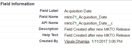 In SFDC it seems the API names are correct starting with mkto71_ but in Marketo, I can not see this API name mapped. In MKTO under field management, there is still mkto2_. Please see the SFDC and MKTO images below