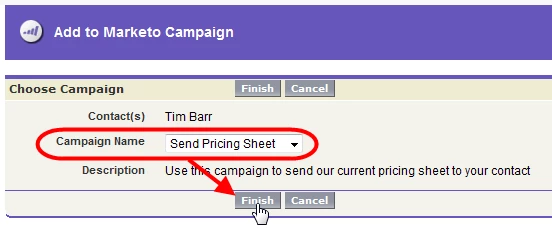 Pick the campaign for this person in the Campaign Name pulldown, then click Finish: