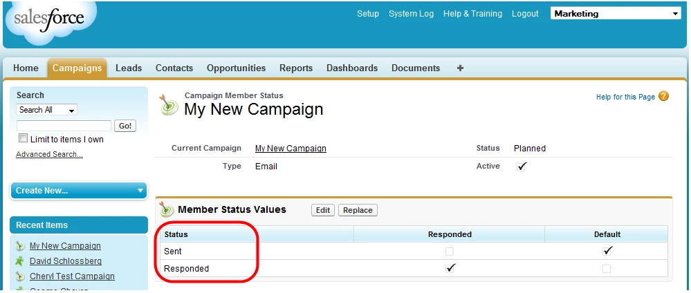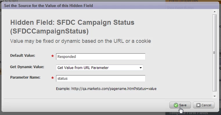 - Default Value: [a real Salesforce campaign status for the campaign you chose]