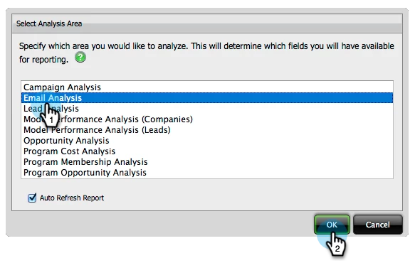 3. Select the Email Analysis area and click OK.