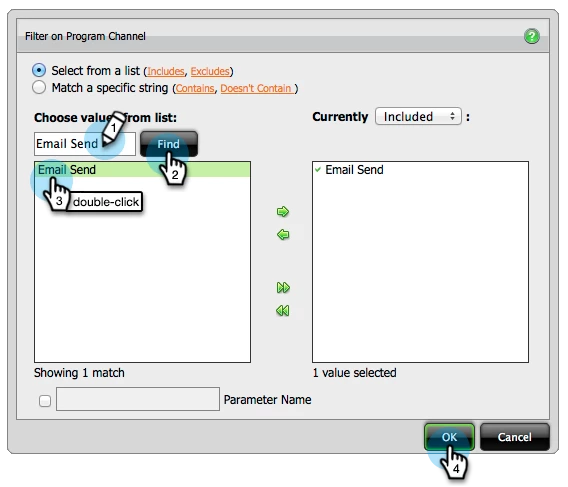 6. Double click the Program Channel yellow dot to add it as a column.