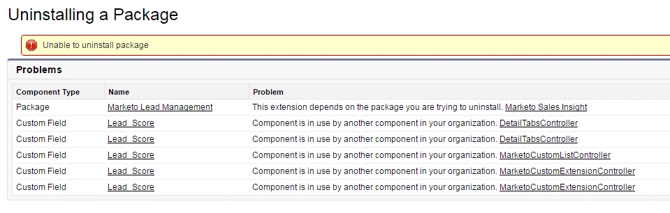 I'm trying to uninstall the MLM package and I get this error.