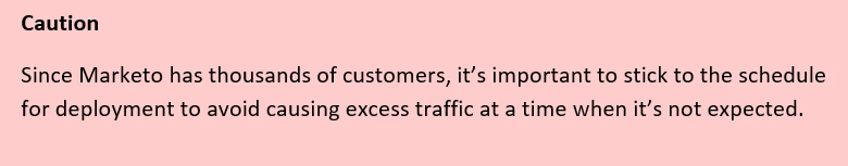 Marketo understands that this change could be an inconvenience and specific timing may be needed for our customers to plan accordingly. If you have a different time within the 6 month window that works better for your company, please reach out and we’ll accommodate as best we can.