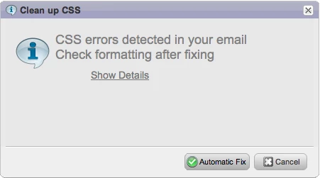 We got your back. These errors will cause your message to look strange in certain email systems. Click on the Show Details link to see the errors and then on Automatic Fix to make them all good again.