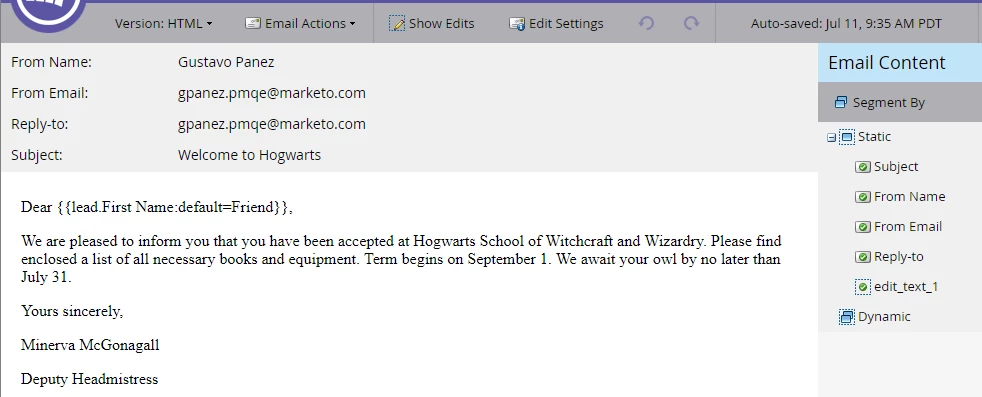 2. Edit an email asset and see what the editor looks like: