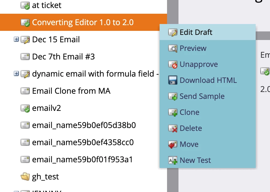 After deprecation, attempts to write to or clone Email 1.0 assets will result in errors instead of warnings.