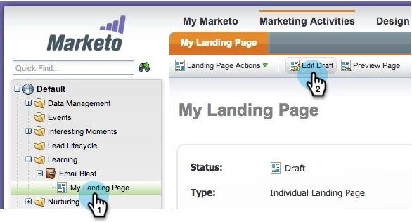 1. Select your landing page and click on Edit Draft.