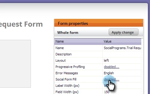 2. Under Form properties, click the Social Form Fill link to enable it.