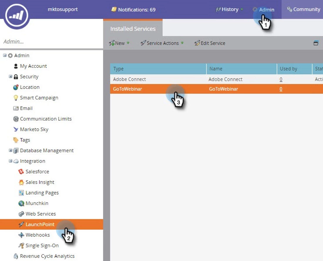 All customers who use GoToWebinar must reauthenticate each of the logins for these services in your Marketo instance by navigating to Admin > LaunchPoint. Any API calls still using OAuth v1.0 after October 1 will fail. This will result in statuses not being shared between Marketo and GoToWebinar and will prevent users from syncing Event programs with a GoToWebinar event.