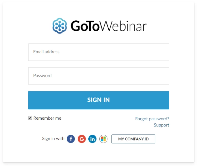 5. In the GoToWebinar Sign In pop-up window, enter your GoToWebinar email and password and click Sign In.