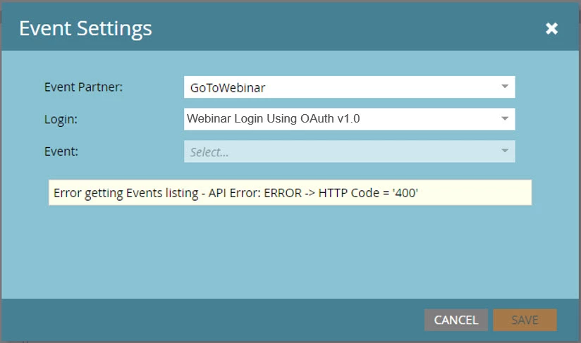 2. Event programs that have not yet synced with GoToWebinar will be unable to sync and will return errors.