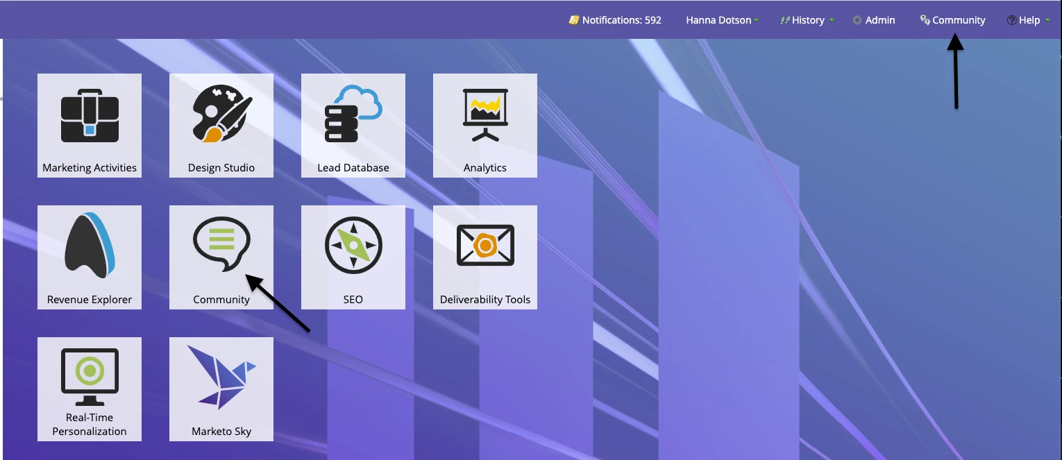 - Click the Community tile (step 1 image)