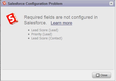 If you tried to Verify the Setup and Configuration of Marketo Sales Insight via the Sales Insight tab in the Admin section of Marketo Lead Management, and the MSI Status wasConfiguration Problem, a configuration error in your Marketo Sales Insight setup was detected, meaning that one or more of the required fields/objects for synchronization were not properly configured in Salesforce.