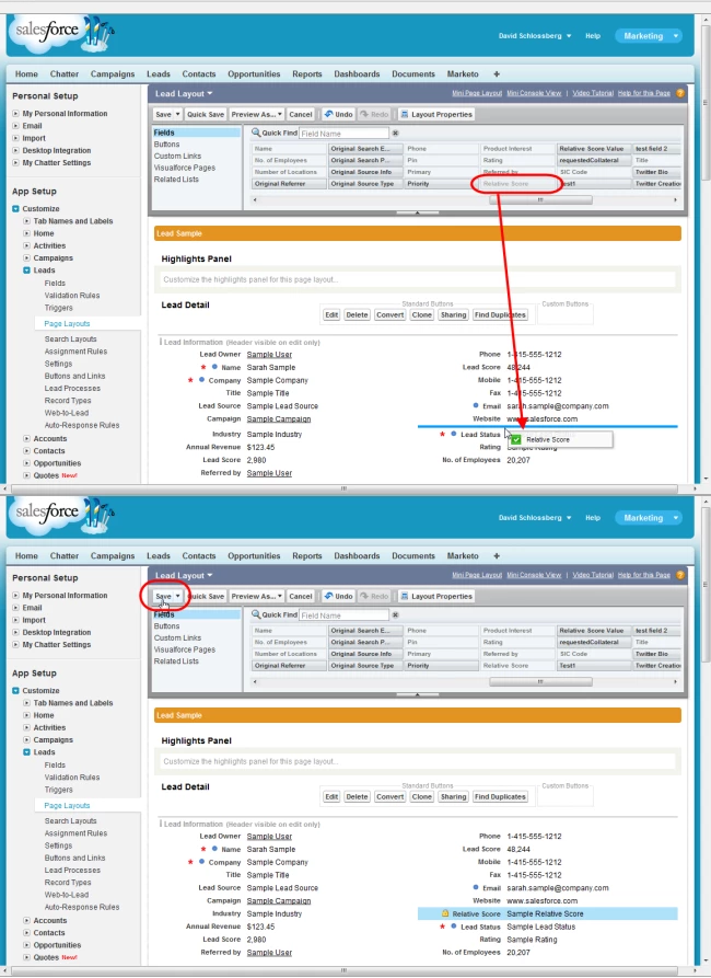 Once the fields are in place, click Save at the top of the layout page.