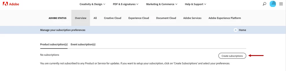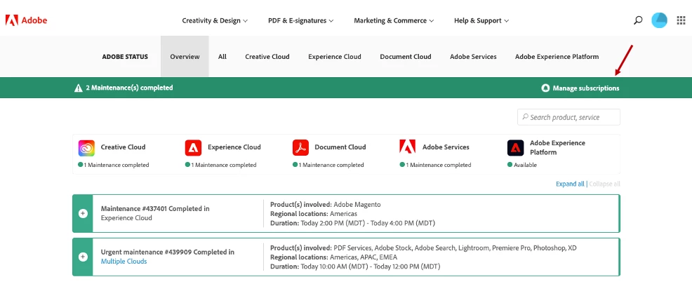 1. Navigate to https://status.adobe.com