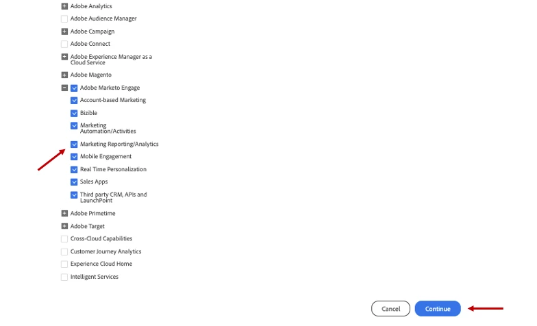 5. Under Experience Cloud, click on Adobe Marketo Engage to expand: