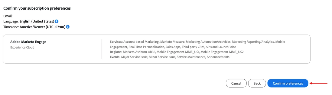 9. Review your subscription preferences and click Confirm preferences