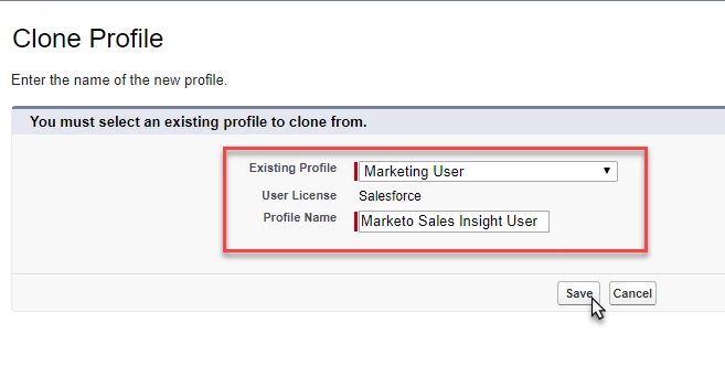 Next, pick a profile to clone and give the new profile a name. Click Save when you're done: