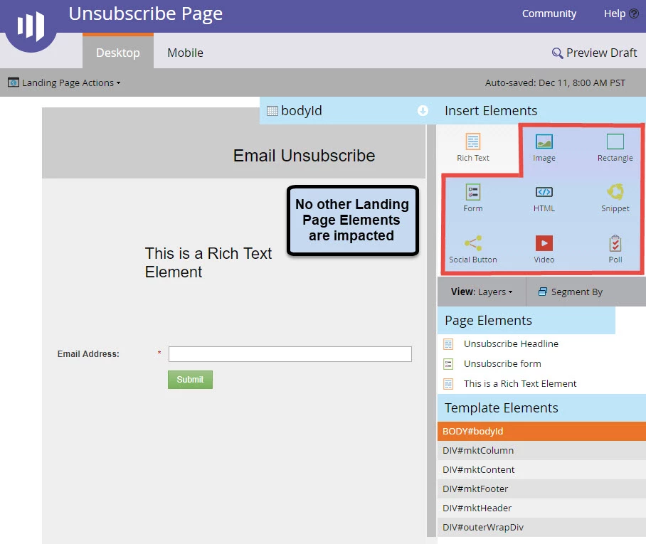 Landing Page Elements Not Impacted – All Other Element Types