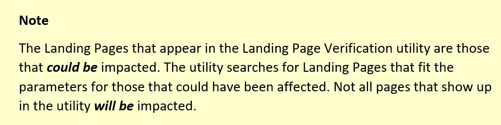 If the Landing Page Verification utility identifies pages that have been impacted, it will show how many pages there were.