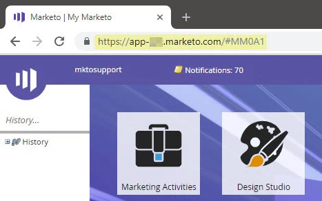 1. Navigate to your My Marketo page and take note of the URL in the address bar.