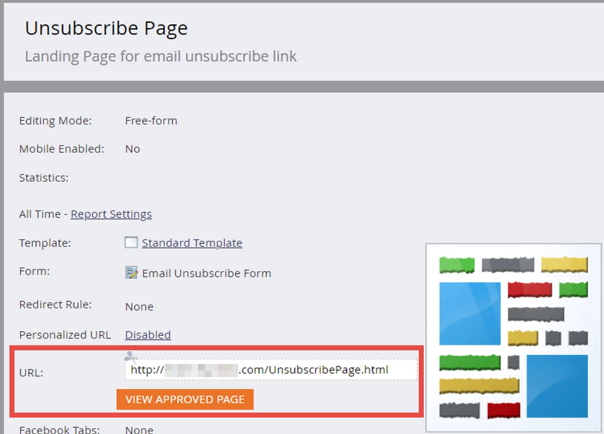 The pages displayed in the Landing Page Verification utility are hyperlinked so that you can click through to those landing pages directly. When you get to the landing page in Marketo, you’ll need to check the live page to see if there are elements missing. The URL for the live page will be found at the bottom, along with a button to navigate directly to the approved page.