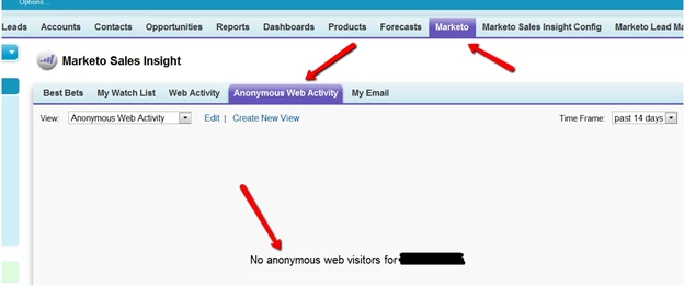 My "Anonymous Web Activity" tab in Marketo Sales Insight is blank.