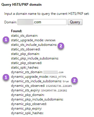 3. In the "Query HSTS/PKP domain" section, type in your domain you wish to check. Click "Query".