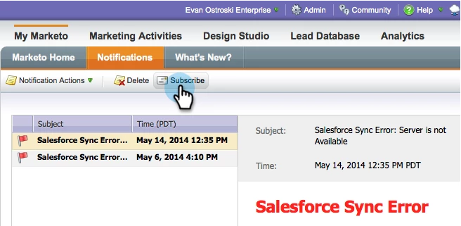 Marketo can send key employees notifications of any errors that occur during the Salesforce sync. Follow the steps below to get started.