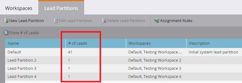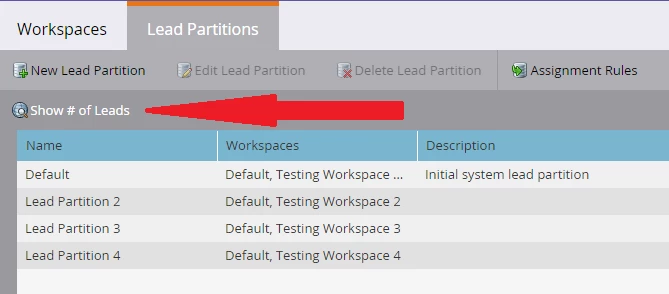 If you receive this error, the first step is to make sure these aren’t known leads. To do this, navigate to Admin > Workspaces & Partitions > Lead Partitions and click the “Show # of Leads” button.
