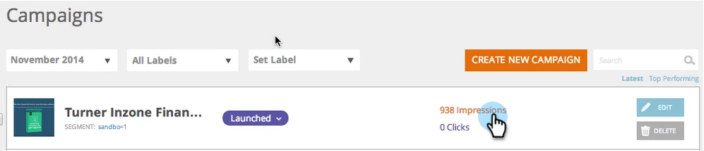 b. Locate the relevant campaign and click the Impressions link to see people that viewed the RTP campaign (make sure the time scope corresponds to the right dates when the campaign was active)