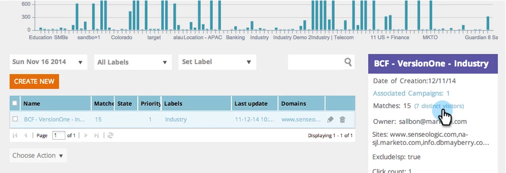 3. Click the Matches link to see the visitors who have matched the segment and check the last match time stamp. You're looking to compare the most recent date/time stamps between the Segment matches and the Campaign impressions.