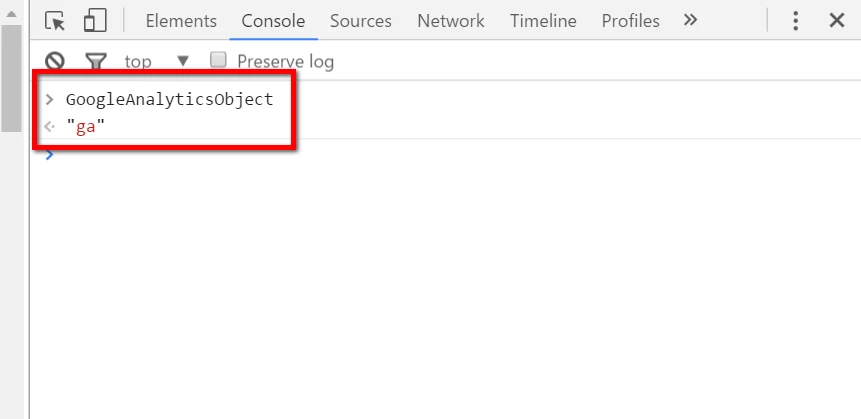 Type "GoogleAnalyticsObject" and hit Enter to check the object's type