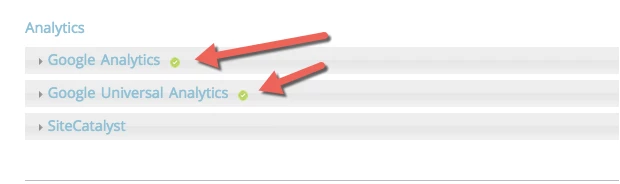 At the bottom of the page, verify that Google Analytics or Google Universal Analytics is enabled. Only one of these integrations should be enabled at a time - if both are, disable one of them.
