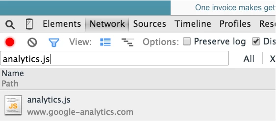 Click the Network tab and search for "analytics.js" and "rtp.js"