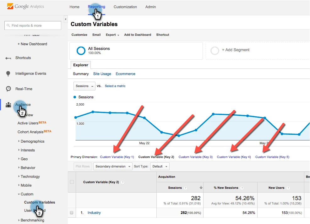 Navigate to Reporting > Audience > Custom > Custom Variables