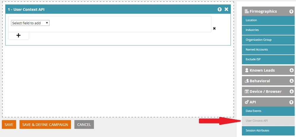 1. Locate and select the User Context API filter (in the API category).