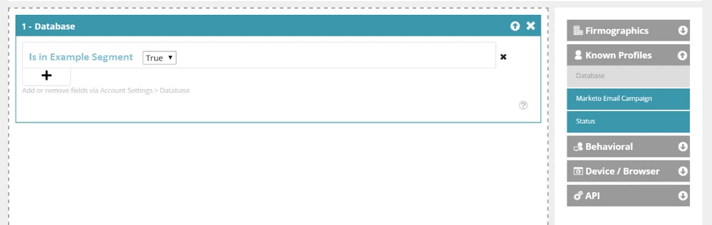 Lastly, use the Database filter, select your custom field, and choose either true or false depending on if you want to target those in or out of the segmentation
