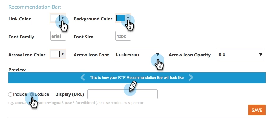 All the Recommendation Bar customization options are available within the RTP account settings page: