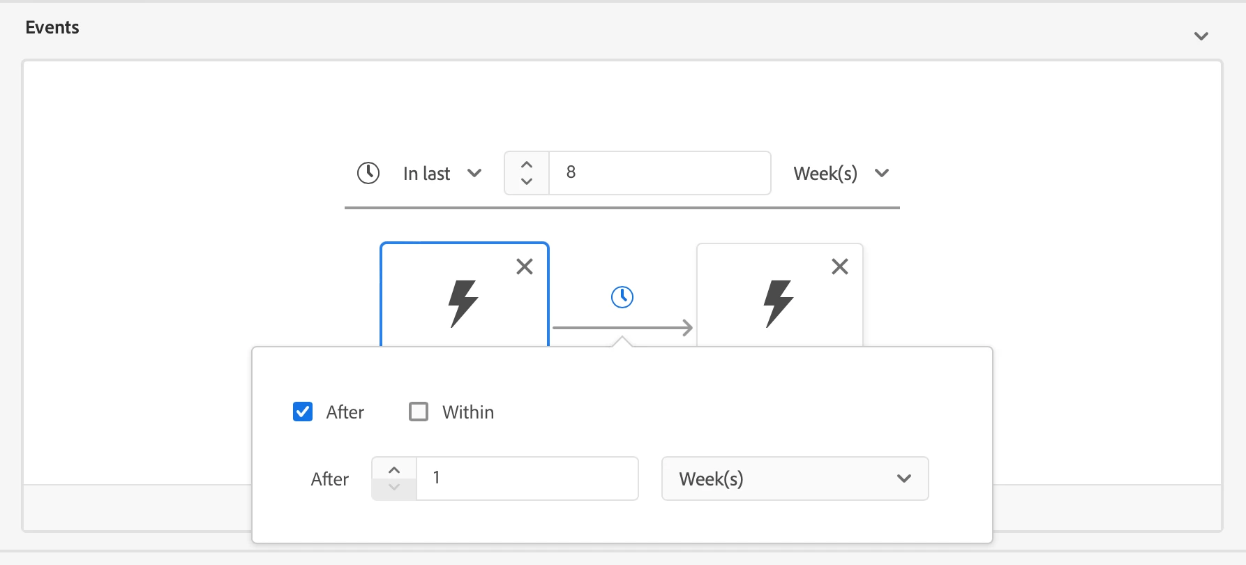 Im curious if its possible to aggregate by week in audience builder. For example, I want to create an audience of customers who complete 2 purchases in different weeks in the past 8 weeks.