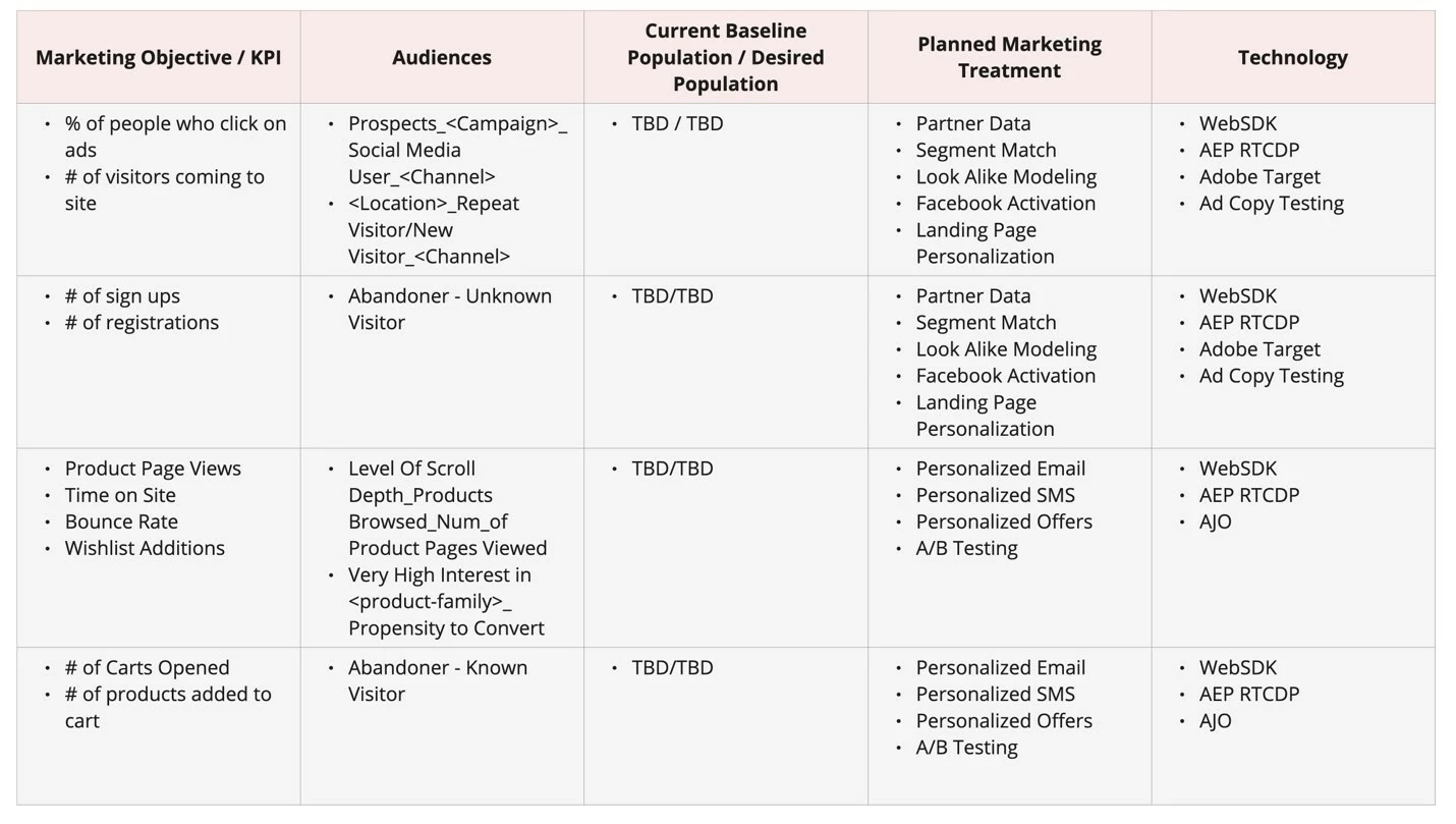 Begin by clearly outlining the use case that drives your audience journey starting from the initial interaction to final conversion. Whether it’s improving product discovery, increasing customers acquisition, re-engaging users with relevant offers, cross-selling or upselling, clearly state the specific objectives you aim to achieve.