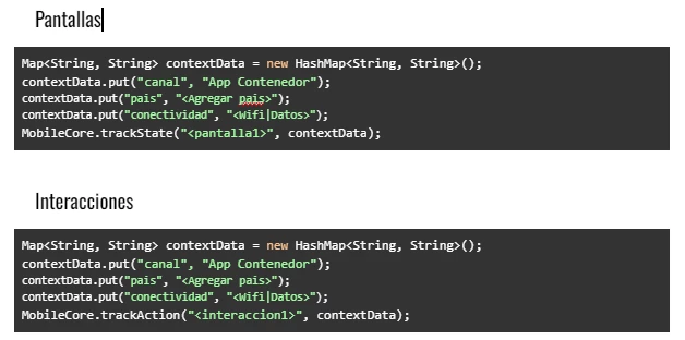 contextData.put("canal", "App Contenedor");
