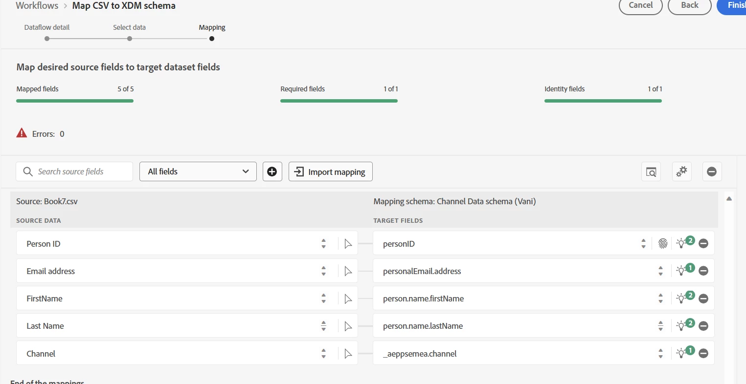 all the attributes mapped correctly but while uploading data into dataset it shows some error status shows as failed.